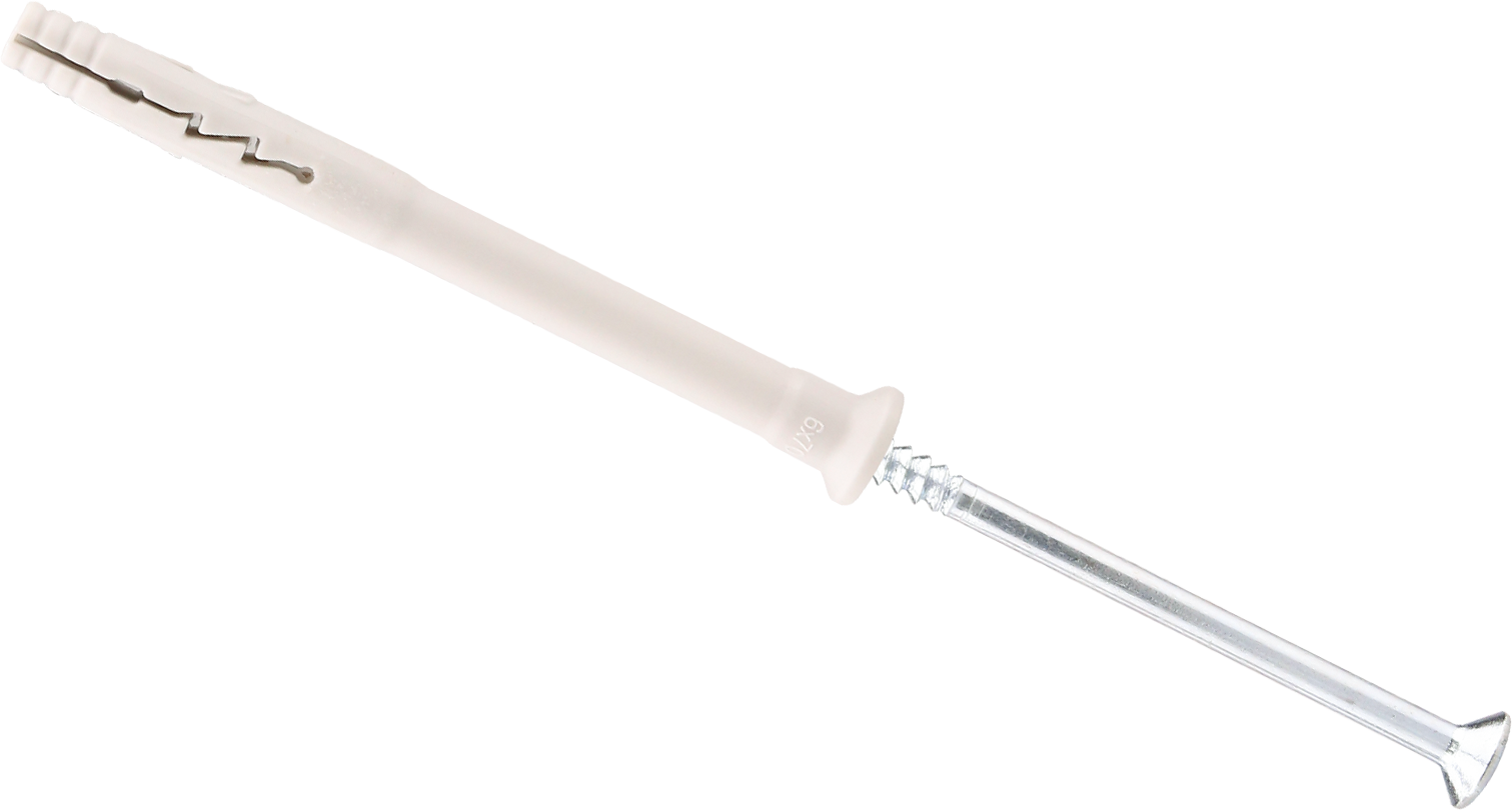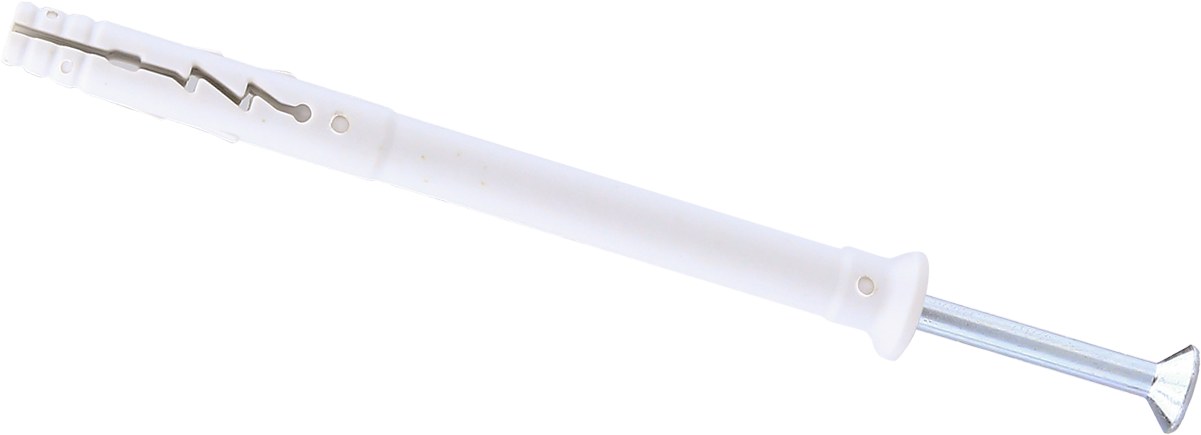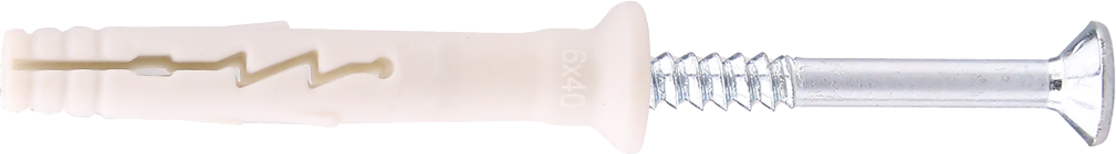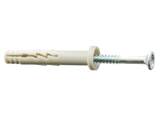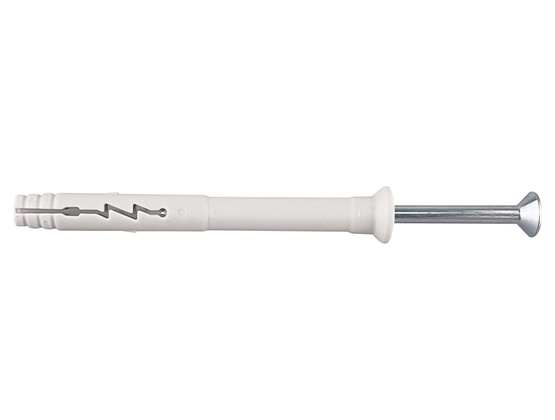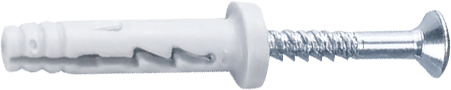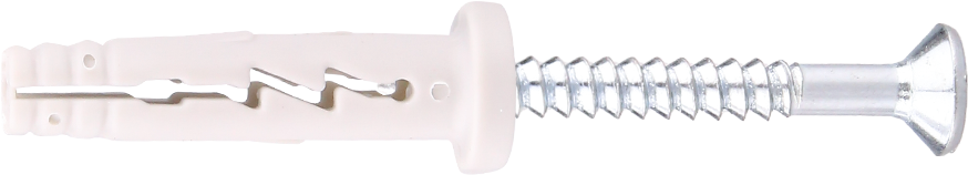 When hammered in, the nail screw causes the plug to expand in two directions, thus providing a secure anchoring in the building material.